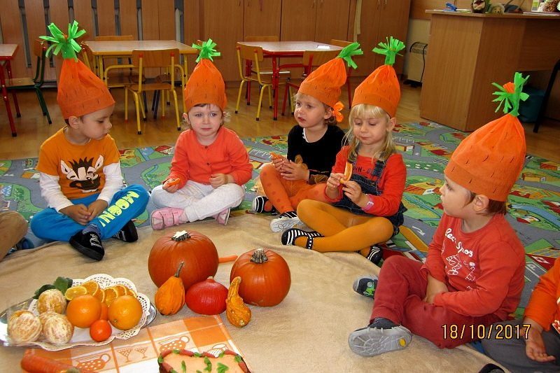 18 października, ulubionym kolorem w Akademii był pomarańczowy. Wszystkie dzieci oraz pani miały na sobie element stroju w tym kolorze. Podczas zajęć przedszkolaki brały udział w zabawach ruchowych, plastycznych a także odgadywały „pomarańczowe” zagadki. Dzieci dowiedziały się jakie walory zdrowotne ma marchewka i piły wspólnie wyciskany sok z tego słodkiego warzywa. Miłą niespodzianką były pyszne, marchewkowe ciasta upieczone przez mamę Zuzi i Zosi. Serdecznie dziękujemy!