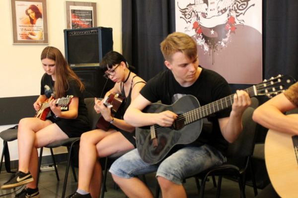Na zajęciach uczymy się zapisu nutowego i czytania tabulatur, oraz gry na gitarze klasycznej, akustycznej, elektrycznej i basowej.