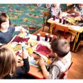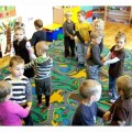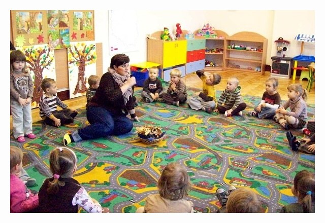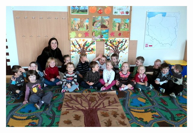 21. października wszystkie dzieci z Akademii Edukacji Przedszkolaka przyszły ubrane na brązowo. Brąz to kolor ziemi, ale i jesieni, bo przecież brązowe są kasztany, żołędzie, liście. Dzieci rozwiązywały zagadki o tematyce jesiennej, słuchały opowiadania o jeżu i układały historyjkę obrazkową. Później były wesołe zabawy z jeżem – zabawy kołowe i przy muzyce. Na koniec wykonały pracę plastyczną – malowały brązowe liście, wykonały jesienne drzewo. Wspólna zabawa dostarczyła dzieciom wiele nowych wrażeń i radości.