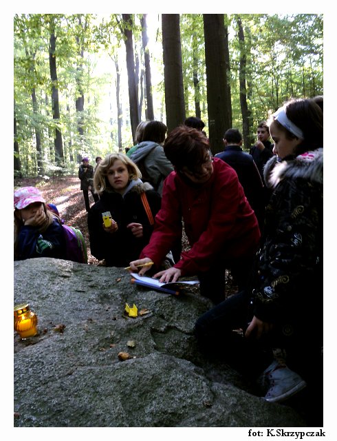W związku ze zbliżającym się Świętem Zmarłych uczniowie ze Szkoły Podstawowej nr 37 zapalili na głazie znicze.