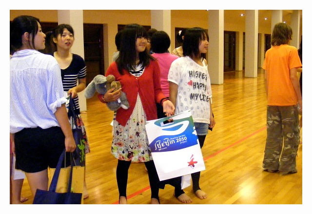 (..) Dla uczestników obozu było dość istotne, czy rozmawiać na temat tragedii, która dotknęła młodzież z Japonii. Kilka z nich straciło domy, a niektórzy – bliskie osoby. Bezwątpienia było to bardzo ciężkie przeżycie. „Nie rozmawialiśmy na ten temat” – mówi Renata Pełszyk, opiekunka szczecińskiej grupy – „Dzieci też nie rozmawiały. Nie chcieliśmy przypominać im o tym. Wiedziały, że jak powrócą do domu będzie im trudno”.
