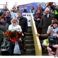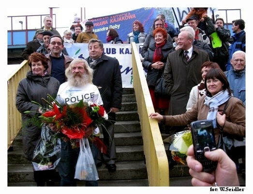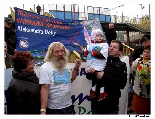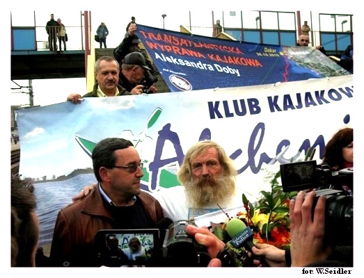 Niedzielne popołudnie, na peronie Dworca Głównego PKP w Szczecinie spory tłumek, z transparentami, kamerami i …wiosłami. Najbliższa rodzina – żona, syn i wnuczka Ola, duża grupa przyjaciół i sponsorów, przedstawiciele władz gminy i powiatu Police, liczni dziennikarze. Wreszcie wjeżdża pociąg pośpieszny z Warszawy. – Olek, Olek, Olek!!! – Olek wpada w objęcia witających. Wzruszenie, gratulacje, spontaniczne pytania i szybkie odpowiedzi. – Dwa razy napadli mnie bandyci, ale nie zniszczyli mojego optymizmu. Może jeszcze ruszę na Pacyfik…
