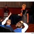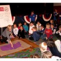 Spotkanie z amerykańską kulturą, historią i obyczajami dzieci rozpoczęły od aktywnego uczestnictwa w rozmowie z panią Renatą Fabiańską-Grzybowską na temat ważnych faktów dotyczących geografii i historii USA. Okazało się, że nasi mali goście nie tylko zadziwili wszystkich swoją wiedzą o Stanach Zjednoczonych, ale również byli żywo zainteresowani omawianą tematyką.