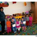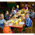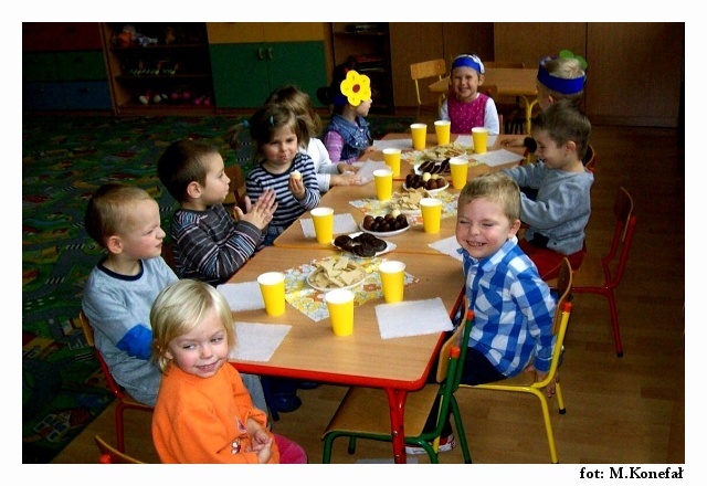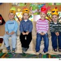 28. października świętowaliśmy urodziny dzieci, które przyszły na świat w tym miesiącu. Jubilaci zostali mianowani na króla i królową poprzez założenie koron. Po koronacji solenizanci usiedli na tronach, a wszyscy złożyliśmy im życzenia i zaśpiewaliśmy „Sto lat”. Następnie zaprosiliśmy wszystkich na urodzinowy bal – były zabawy kołowe oraz dyskoteka. Po wesołej zabawie odbyła się prawdziwa królewska uczta. Dzieci zajadały się cukiereczkami, ciasteczkami, przygotowanymi przez rodziców, którym serdecznie dziękujemy za pyszne słodkości.