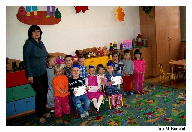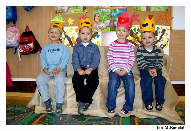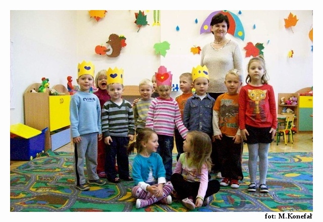 28. października świętowaliśmy urodziny dzieci, które przyszły na świat w tym miesiącu. Jubilaci zostali mianowani na króla i królową poprzez założenie koron. Po koronacji solenizanci usiedli na tronach, a wszyscy złożyliśmy im życzenia i zaśpiewaliśmy „Sto lat”. Następnie zaprosiliśmy wszystkich na urodzinowy bal – były zabawy kołowe oraz dyskoteka. Po wesołej zabawie odbyła się prawdziwa królewska uczta. Dzieci zajadały się cukiereczkami, ciasteczkami, przygotowanymi przez rodziców, którym serdecznie dziękujemy za pyszne słodkości.