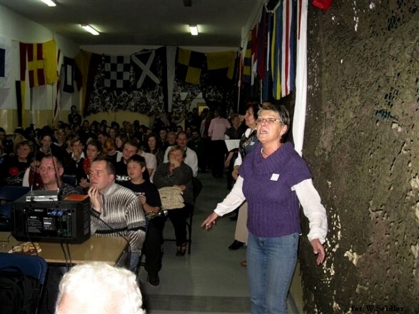 Jest to bodajże najstarszy międzyszkolny Przegląd Piosenki Żeglarskiej i Szantowej w Szczecinie – popularny ”Kalmar” – corocznie w pierwszą sobotę grudnia, od 24 lat!, gromadzący wykonawców i słuchaczy w sali gimnastycznej ZSBO (obecnie ZSTiM), a niestrudzonymi prowadzącymi są od lat Irena Perkowska (na zdjęciu) i dyr. Andrzej Usielski. Profesjonalne jury – z udziałem „szantujących” żeglarzy, kapitanów i nauczycieli – nie miało łatwego zadania, by wybrać najlepszych wykonawców, spośród siedmiu zespołów, z Gim. 23 i 29, ZSO 4, ZSTiM, ZSE-E, II LO i III LO, i z kilkoro solistów, z Gim. 23, ZSO 4, LO z OI i ZS 6.