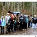 Po drodze zrobiliśmy przystanek przy dwóch tujach – żywotnikach zachodnich sprowadzonych z Ameryki Północnej / uwaga, liście są trujące /, następnie szlakiem czerwonym dotarliśmy w strugach deszczu pod Gubałówkę, skąd już w promieniach słońca szlakiem niebieskim wdrapaliśmy się na Wielecką Górę / 131 m.n.p.m. / i schodząc łagodnie w dół dotarliśmy do zabytkowego Kościółka Wniebowzięcia NMP w Przęsocinie, o którym pierwsza wzmianka pochodzi z 1286 roku.