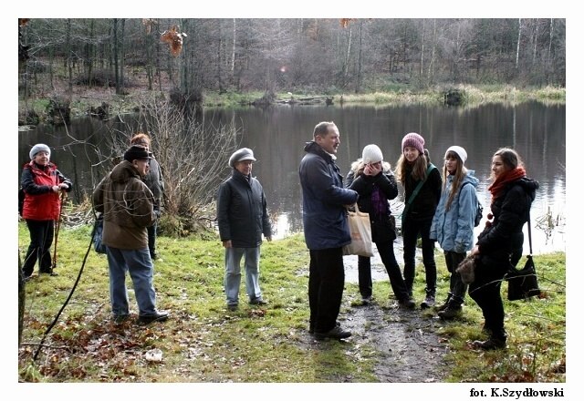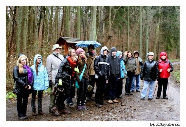 Nie było nas dużo, część wędrowców „uciekła” przed deszczem ale my dotarliśmy pełni humoru do końca. Rajd prowadził i ciekawe historyjki opowiadał przewodnik Mirek Dudziński.