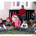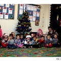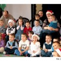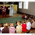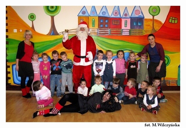 „Mikołaju, Mikołaju na Ciebie czekamy też. Moc prezentów nam przyniesiesz, o czym marzę dobrze wiesz!” – to refren piosenki, którą przedszkolaki przygotowały na spotkanie z Mikołajem. Tak głośno ją śpiewały, że Mikołaj usłyszał i przybył do Pałacu. Nie był sam, wraz z nim przybyli aniołek i diabełek z przedstawieniem teatralnym. A było tak: Mały czarcik, jak to mają w zwyczaju diablątka zrobił Mikołajowi psikusa i schował jego worek z prezentami. Na całe szczęście wszystko widziały dzieciaki i podpowiedziały Mikołajowi, gdzie są tak długo wyczekiwane prezenty. Przygoda Mikołaja skończyła się szczęśliwie i mógł rozdać dzieciom prezenty. Po spektaklu były kolędy, tańce i konkurs rzutu śnieżkami. Na koniec każdy miał okazję usiąść Mikołajowi na kolanach, przytulic i podziękować za wspólną zabawę.