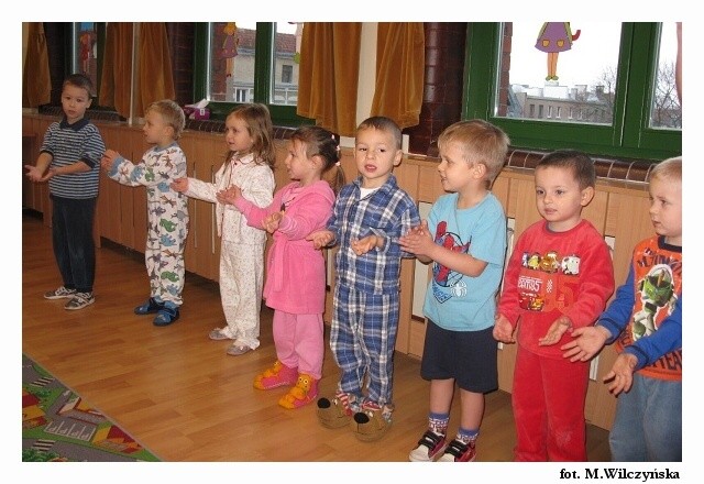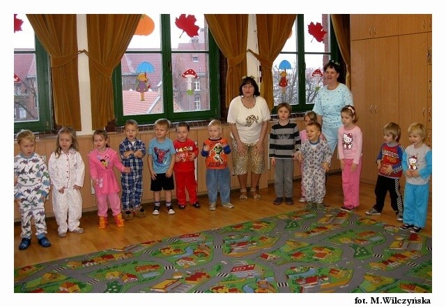 Nie, to nie żarty. Postanowiliśmy urządzić w naszej akademii WIELKI BAL PIŻAMOWY dla naszych wychowanków. Andrzejki na wesoło. Cała społeczność przedszkolna, przebrana w piżamy. Kreacje – różne : krótkie spodenki piżamowe, długie spodenki, szlafroczki oraz koszulki nocne. Wszystkie Panie dały dobry przykład dzieciom, przebierając się również w odpowiednie stroje oraz dodatki. Dzieci bawiły się przy rytmach gorącej muzyki. Zabawa była wyśmienita o czym świadczyły uśmiechnięte buźki uczestników Balu. Naprawdę, warto było to przeżyć i zobaczyć. Po szalonych tańcach dzieci zasiadły do przygotowania pięknych symboli andrzejkowych: butów oraz kluczy. Wszystkim taki bal ogromnie się podobał. Oj, już nie możemy się doczekać kolejnego szalonego i niezapomnianego balu.