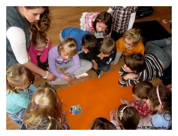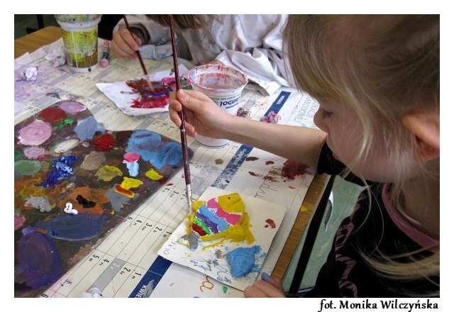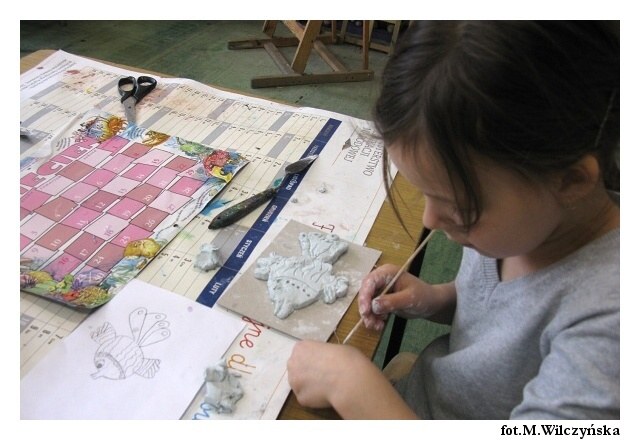Podczas ostatnich zajęć teatralnych odbyły się krótkie improwizacje pt. „Leśna kraina” a na zajęciach plastycznych dzieci kończyły swoje prace – malowały gliniane ryby.