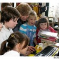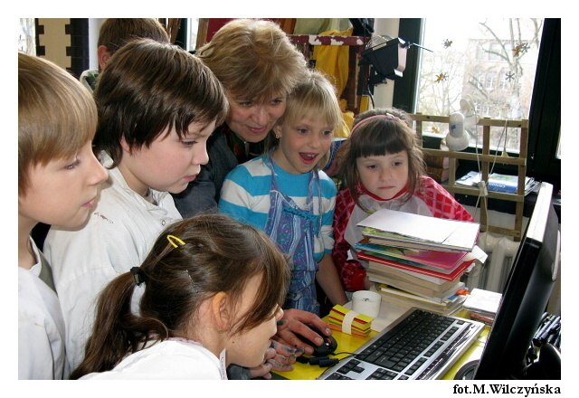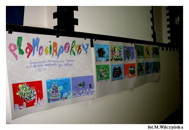 Na zajęciach plastycznych powstawały kompozycje jednosymetryczne, czyli po prostu piękne kolorowe ryby, które rodzice mogą obejrzeć na korytarzu przed pracownią plastyczną.(II p.). Jakie piękne i pełne rozmaitych barw mogą być podwodne stworzenia dzieci mogły przekonać się oglądając je w trakcie zajęć na ekranie komputera. A potem przy pomocy tuszu stworzyły własne.
