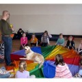 Na zakończenie młodsze grupy wzięły udział w imprezie edukacyjnej – „Bezpieczna zabawa zimowa”. Dzieci uczestniczyły w wielu zabawach ruchowych. Hasłem przewodnim było: BEZPIECZNA ZABAWA TO PODSTAWA. Odbyła się bitwa na snieżki, chodzenie po linie, wyścigi sań, zabawa z chustą KLANZY oraz pokaz żonglerski.