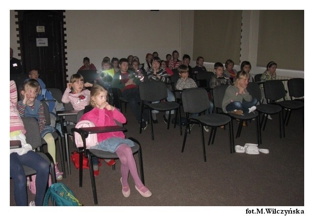Na zakończenie dzieci obejrzały film pt. „Delfin Plum” w pałacowej sali multimedialnej.