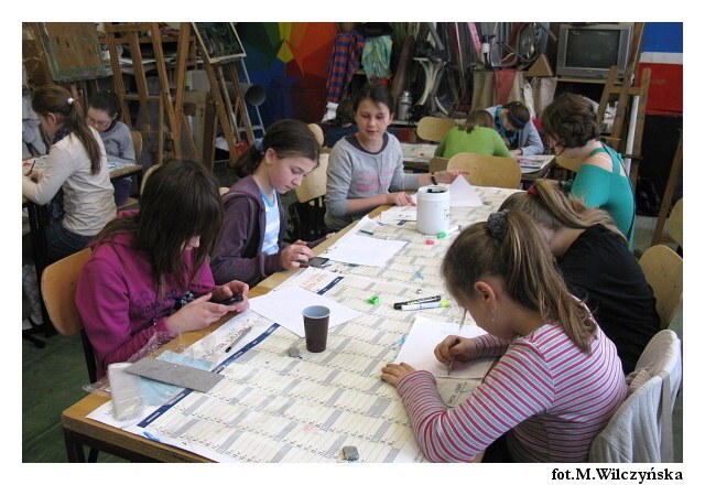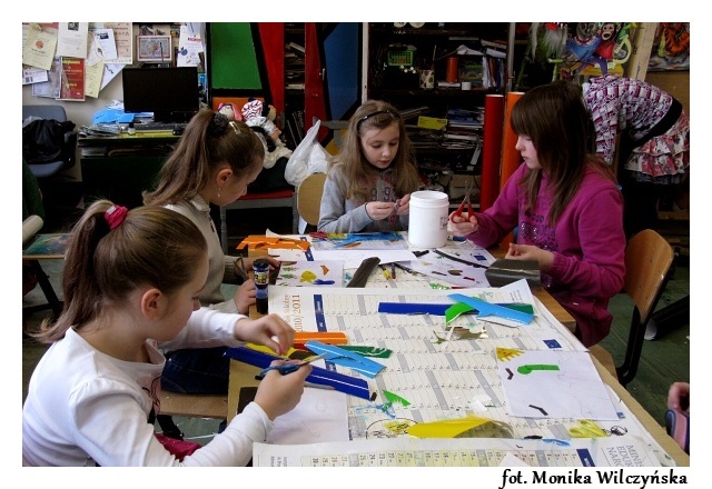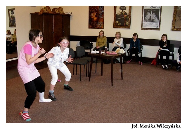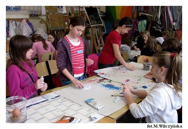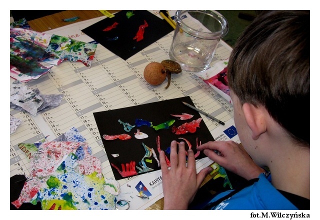 W trakcie zajęć plastycznych powstawały wspaniałe i kolorowe „Plamoryby” z papieru japońskiego. Było przy tym mnóstwo zabawy i plam! Na zajęciach teatralnych odbyły się ćwiczenia artykulacyjne a potem uczestnicy odgrywali krótkie etiudy.
