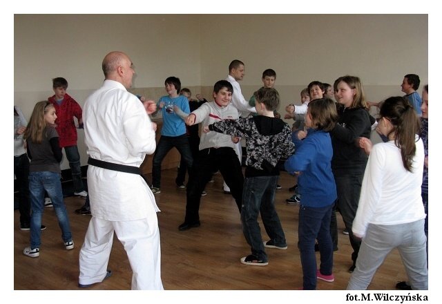 Na zakończenie grupy starsze uczestniczyły w imprezie pt. „Samoobrona – ciało i umysł” prowadzonej przez doświadczonych nauczycieli karate – Mariusza Tańskiego (II DAN) oraz Marka Ramusa (V Dan).