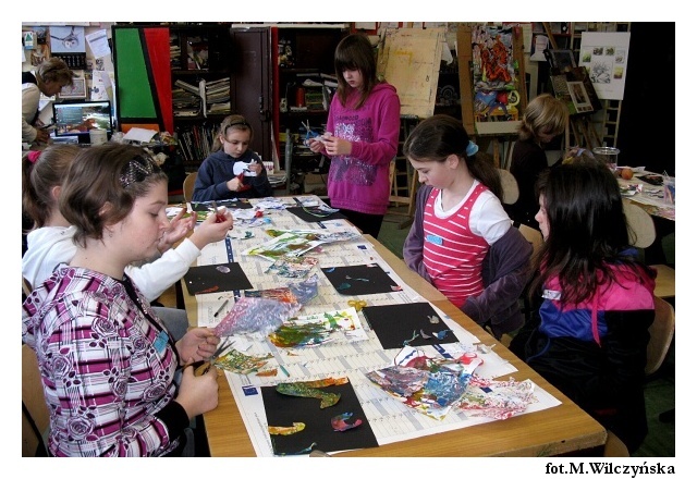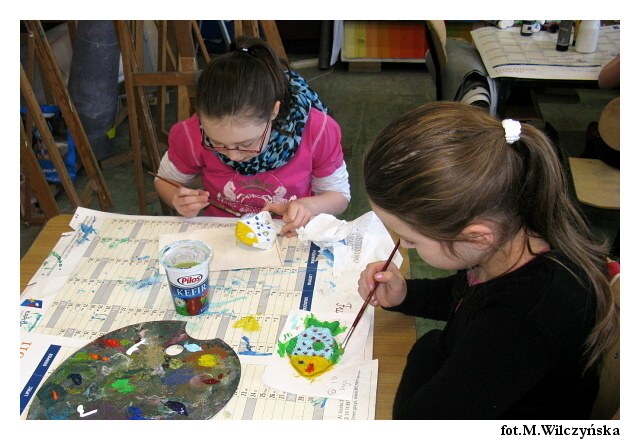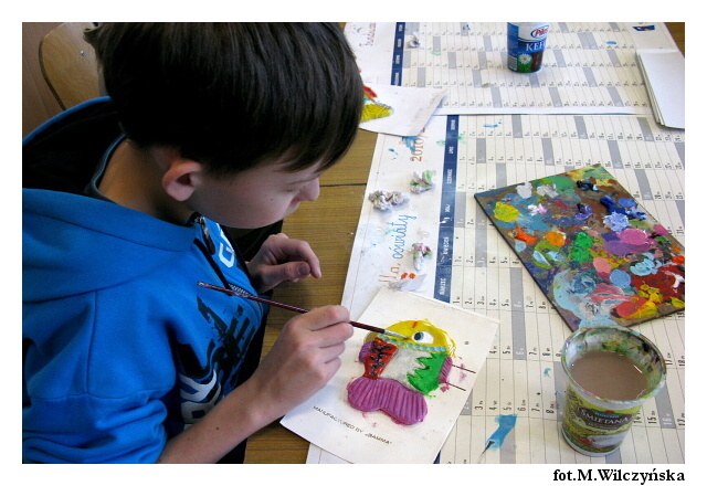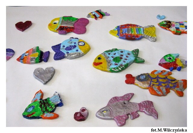 Tematem zajęć plastycznych była dziś… „Polichromia grubej ryby”. Jakkolwiek poważnie by to nie zabrzmiało, zajęcie było naprawdę ciekawe, a „grube ryby” – sympatyczne i kolorowe! 🙂