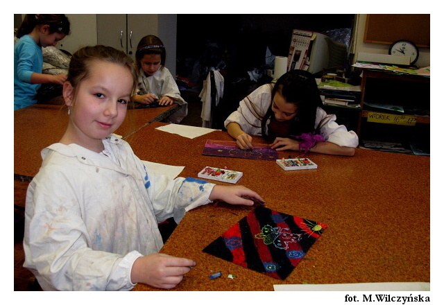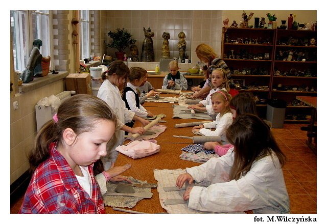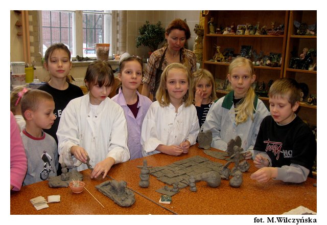 Na dzisiejszych zajęciach plastycznych dzieci tworzyły z gliny swoich ulubionych bohaterów. Powstały rzeźby i płaskorzeźby psów, ryb, kotów, psów a nawet koto-wiewiórek! Na zajęciach tanecznych grupa ćwiczyła kompozycje taneczne w rytmie hip-hopu. Na zakończenie w pałacowej sali multimedialnej, wszyscy obejrzeli film pt. „Rango”, o przygodach pewnego Kameleona, który w miasteczku opanowanym przez bandytów, postanawia zostać stróżem prawa i zwalczać złych, a pomagać dobrym.