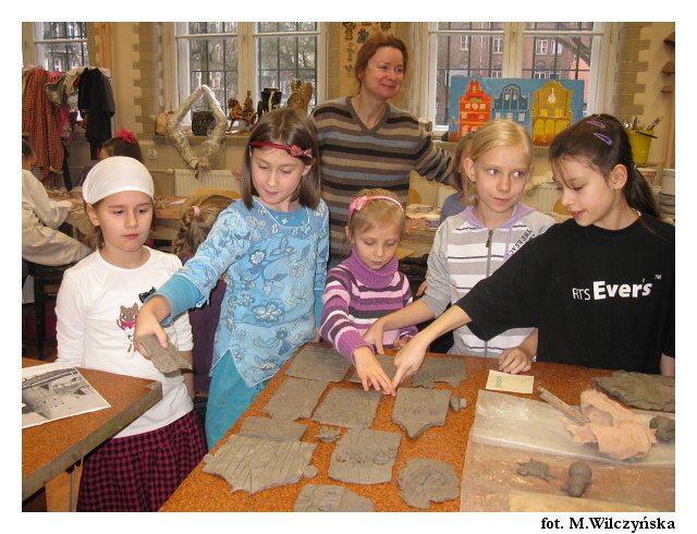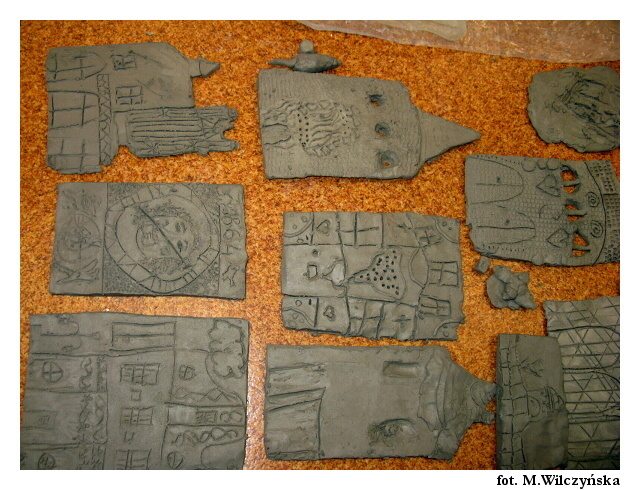 Na zajęciach plastycznych powstawały dziś płaskorzeźby z gliny. Tematem była architektura Szczecina. Powstały więc domy z ozdobnymi elewacjami, a nawet Baszta Panieńska.