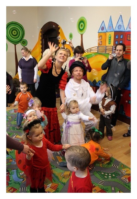 Na Balu Karnawałowym w Pracowniach Edukacji Przedszkolaka bawiły się m.in. małe księżniczki, biedronki, elfy, pszczółki, mali kowboje, jeden żółw i piraci. Rytmiczne zabawy przy muzyce, pokaz magicznych sztuczek, dmuchanie balonów i puszczanie baniek – to wszystko w towarzystwie wesołego Klauna Tomiego. Zabawa była udana co potwierdzają uśmiechy na twarzach najmłodszych.