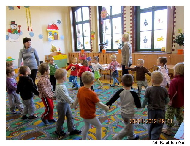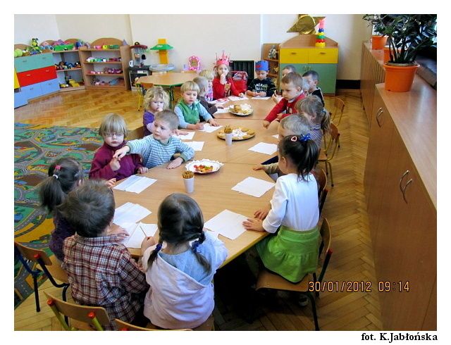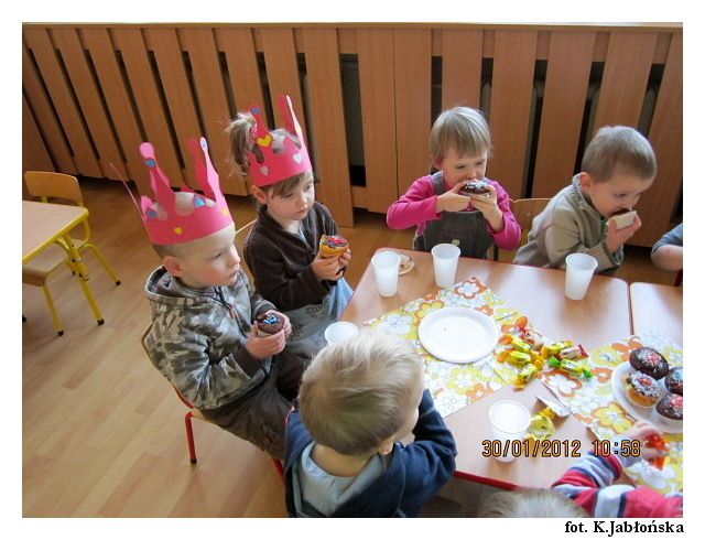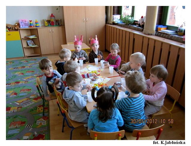 Choć za oknem mroźna zima, to w naszej Akademii panowała niezwykle ciepła atmosfera. 30 stycznia świętowaliśmy czwarte urodziny Zuzi i Michała z gr. I, oraz piąte urodziny Marty i Patryka z gr. II. Na początek wręczyliśmy naszym jubilatom korony Króla i Królowej oraz zaśpiewaliśmy gromkie Sto Lat! Następnie wspólnie bawiliśmy się w nasze ulubione zabawy. Na zakończanie usiedliśmy przy wspaniale zastawionym stole i objadaliśmy się pysznymi smakołykami.