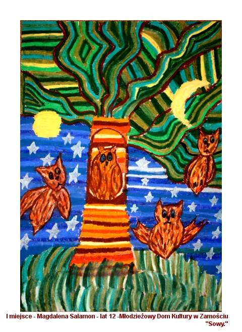 ilustracja do wiersza: „Sowy” W. Chotomska