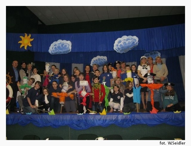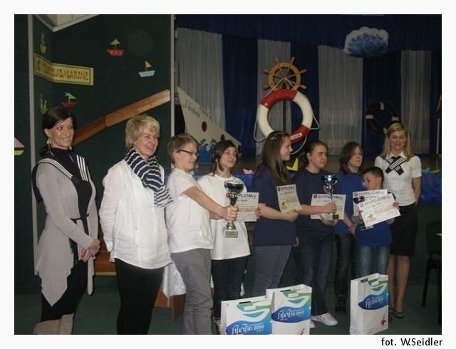 Rzeczywiście uczestnicy konkursu – dziewięć drużyn, z SP 1,5,14,23,45,53 i 56, i z Centrum Żeglarskiego – musieli wykazać się znajomością nie tylko „żeglarskiego ABC” – i to zarówno w wersji polskiej jak i angielskiej – ale też umiejętnością zaśpiewania szanty, a także wykonania Marzanny – bo konkurs odbył się 21 bm., właśnie w pierwszy dzień kalendarzowej wiosny. Zadania i pytania konkursowe nie były łatwe, ale wszyscy mieli jednakowe szanse, w atmosferze dobrej zabawy i życzliwej rywalizacji, pod okiem jury i opiekunów SKEM. Najlepszymi okazały się kolejno drużyny gospodarzy, CŻ i SP 56, wyróżnione pucharami, a dla wszystkich były też dyplomy i upominki. Podobał się też morski program artystyczny, przygotowany przez gospodarzy, uczniów klas młodszych. Była to więc udana druga edycja nietypowej anglojęzycznej wyprawy „podwodnej”, za rok ruszą w następną, znowu w SP 45…
