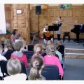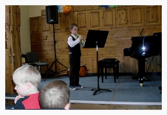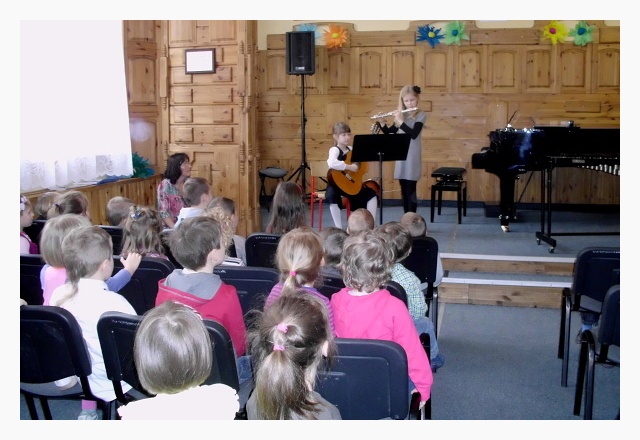 Dzieci poznały podczas występów nazwy i brzmienie wielu instrumentów muzycznych, takich jak: flet, altówka, perkusja, puzon, wiolonczela, trąbka i gitara. Popisy młodych artystów sprawiły przedszkolakom ogromną radość i zostały nagrodzone gromkimi brawami. Dziękujemy za zaproszenie i niezapomniane wrażenia.