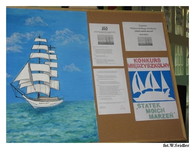 Czy „statek moich marzeń” mógł być inny niż „Fryderyk Chopin”, jeżeli patronem SP 53 jest właśnie nasz genialny kompozytor? Tak więc przewodnim motywem międzyszkolnego konkursu plastycznego dla szkół podstawowych, zorganizowanego przez SKEM przy SP 53, był rzeczywiście piękny polski bryg „Fryderyk Chopin”, ale „Statek moich marzeń” zainspirował młodych artystów do niezwykle szerokiej interpretacji twórczej, od rysunków i malunków, po niezwykle pomysłowe i fantazyjne modele, albumy, wiersze, kompozycje, itp., itd. Wszystko to także dzięki pomysłowości i zaangażowaniu organizatorek konkursu, opiekunek Koła – Emili Piskorowskiej i Grażyny Wawrzyniak, wspieranych przez grono pedagogiczne, uczniów i rodziców. Finał konkursu, 2 marca br. – w połączeniu z rewelacyjną wystawą, programem artystycznym i spotkaniem uczestników – był prawdziwym świętem szkoły i może być dobrym przykładem dla pozostałych naszych SKEM, tym bardziej, że ich Koło działa dopiero pierwszy rok. Nagrodzono aż 47 finalistów, z sześciu szkół – SP 53,20,41,42,45,54 i ZS 1, w trzech kategoriach – prace plastyczne (klasy 0-3), formy przestrzenne (3-6), i prace komputerowe (0-6). Brawa dla laureatów i organizatorów (na zdjęciach)!