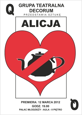 Zespół teatralny DECORUM z Pałacu Młodzieży zaprasza na „Alicję” – sztukę na motywach utworu Lewisa Carolla. Premiera: 12 marca 2012 o godz. 19:00 w auli Pałacu Młodzieży. Przedstawienie przeznaczone jest dla widzów dorosłych.