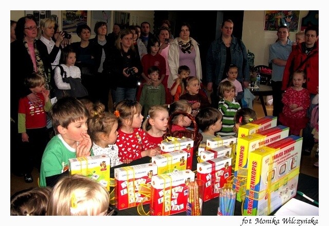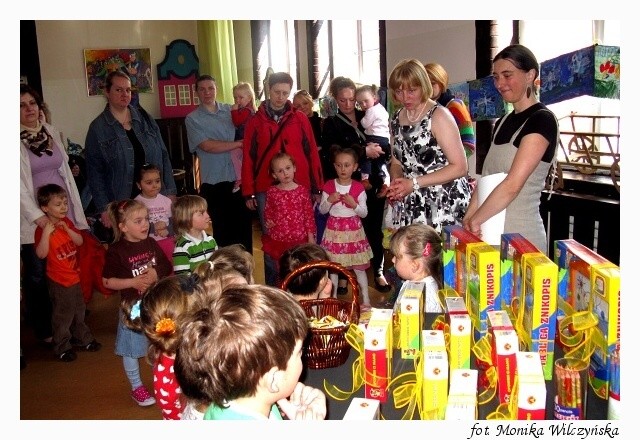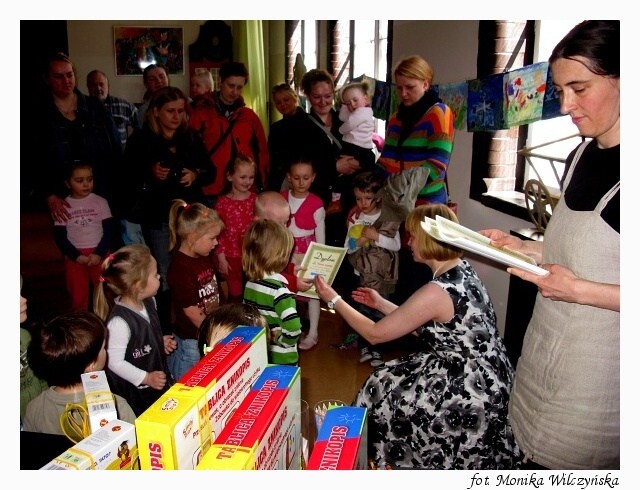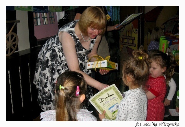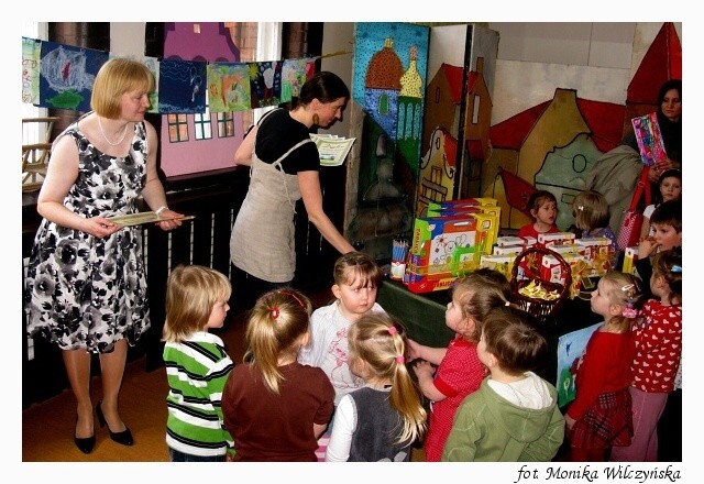 Każde dziecko otrzymało pamiątkowy dyplom i zaczarowaną kredkę, która rysuje w wielu kolorach. Stolik z nagrodami budził wiele emocji u najmłodszych. Każdy chciał zobaczyć jakie niespodzianki się na nim kryją. SKOK Chmielewskiego ufundował dla wyróżnionych w konkursie osób gry edukacyjne oraz trzy główne nagrody – tablice magnetyczne. Trafiły one do Antka Nowackiego, Justynki Chodynieckiej i Marty Żwirko. Gratulujemy!