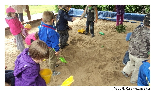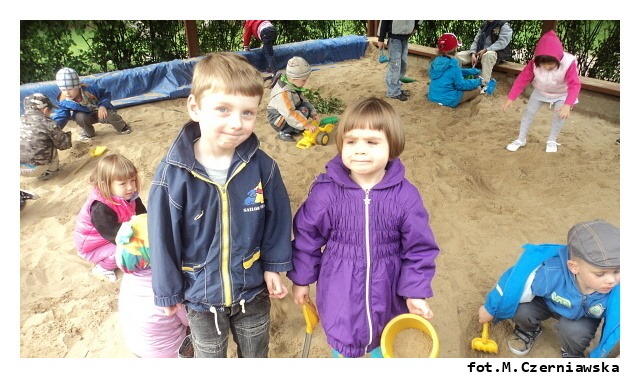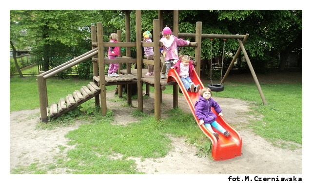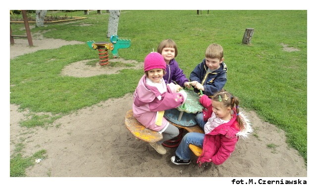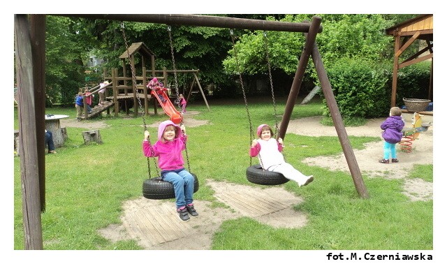 W piątek 18 maja gr. III „Misiaczki” po raz pierwszy odwiedziła plac zabaw w zaprzyjaźnionym Przedszkolu nr 20 na ul. Wieniawskiego. Słoneczna pogoda sprzyjała naszej wycieczce. Dzieci pojechały busem, więc miały też okazję trochę poznać miasto. Na placu zabaw bawiły się w piaskownicy, huśtały na konikach i zjeżdżały na ślizgawce. Wesoło biegały po ogrodzie i wspinały na drabinki. Wyprawa bardzo się udała a zadowolone „Misiaczki” chętnie odwiedzą plac ponownie.