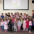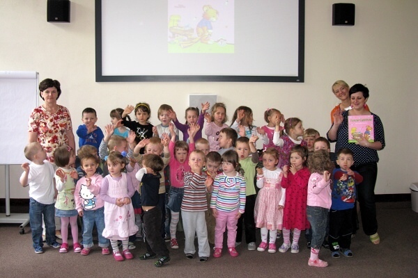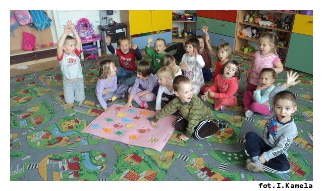 Po raz kolejny zawitała do nas urocza mała myszka z wielkimi problemami, czyli Tupcio Chrupcio. Tym razem nasz ulubieniec dostał w prezencie siostrzyczkę, co na początku nie bardzo mu odpowiadało, bo Tupcio marzył o braciszku, wspólnych grach w piłkę i jazdach samochodem. Nie zawsze los daje nam to, czego pragniemy. Warto jednak z każdej, nawet bardzo trudnej sytuacji znaleźć nowe, pozytywne rozwiązania i możliwości. Te wartości staraliśmy się przekazać naszym dzieciakom poprzez: czytanie opowiadania Tupcio Chrupcio ma rodzeństwo, rozmowę oparta na osobistych doświadczeniach dzieci z ich własnym rodzeństwem z wykorzystaniem rodzinnych fotografii, zabawy integracyjne a także wspólną naukę piosenki „Moja rodzina to fajna drużyna„. Na zakończenie dzieci odciskały rączki przyjaźni oraz tworzyły kukiełki brata i siostry.