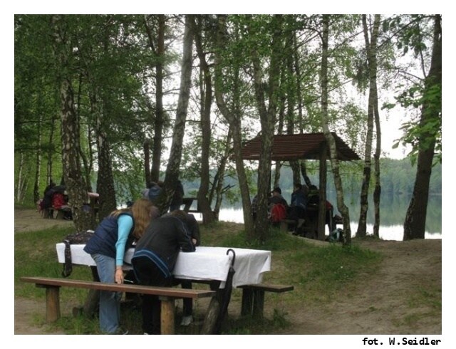 Zaczęli od wizyty w jednym z największych w kraju rezerwacie …cisów, w Nadleśnictwie Rokita, potem ruszyli dalej, na polanę nad jeziorem w Czarnogłowach. Gdzie to jest? Co robili tam nauczyciele i uczniowie z SKEM ze szkół podstawowych? Wszystko za sprawą Danuty Jastrzemskiej, Opiekunki naszego Koła właśnie przy SP w Czarmogłowach, teraz praktycznie jedynej szkoły z naszego województwa, pozostającej w naszym Programie. Od dawna zapraszała nas z wizytą do siebie, gdzie główna atrakcją jest piękne i czyste jezioro, które powstało sztucznie, na miejscu wyłączonej z eksploatacji w połowie XX wieku odkrywkowej kopalni kredy. Podobnie jak jezioro Szmaragdowe w Szczecinie i Turkusowe na wyspie Wolin, także to w Czarnogłowach jest bardzo czyste i znane wśród płetwonurków, nie tylko w Polsce.