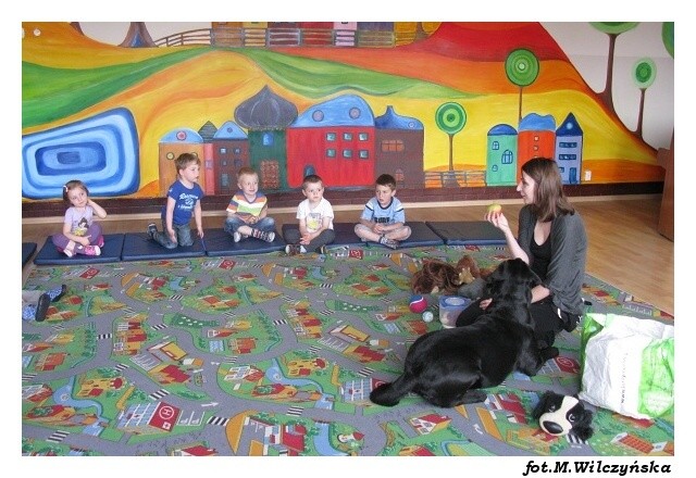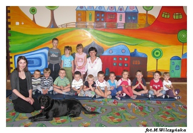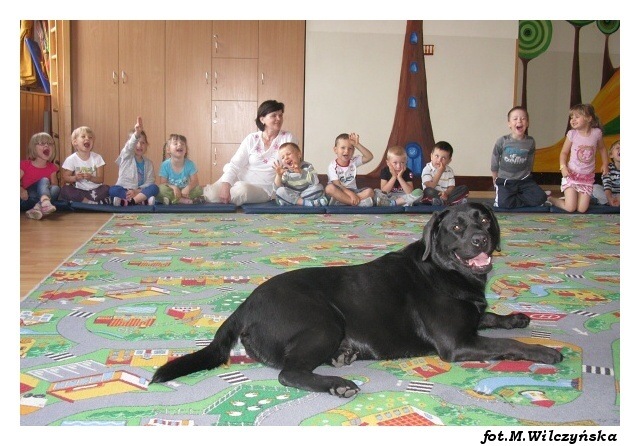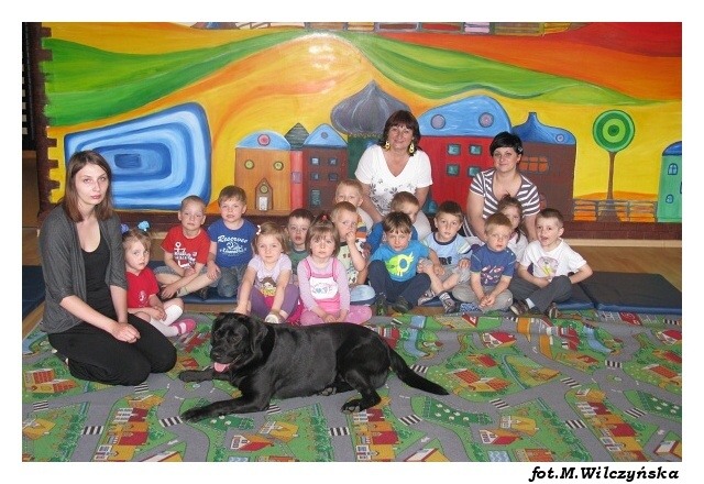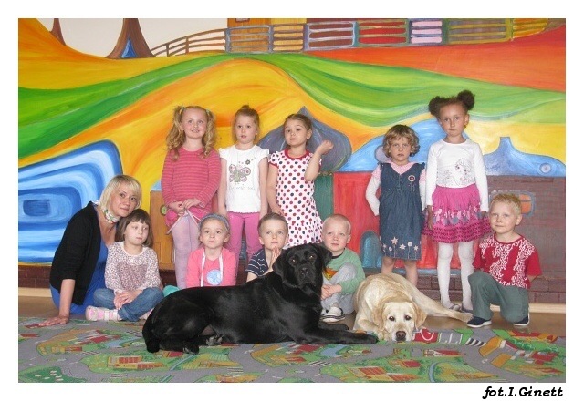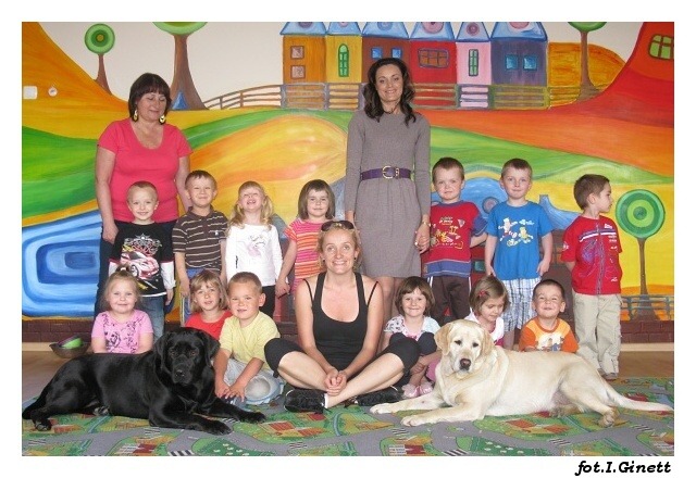 W środę w grupach porannych i czwartek w popołudniowych, po raz ostatni w tym roku szkolnym odwiedziły nas Aura i Buba. Największą radość wszystkim grupom sprawił bezpośredni kontakt z psami, karmienie i przytulanie labradorów. Tym razem mieliśmy okazję zobaczyć specjalną kamizelkę ratunkową dla psa ratownika, w której pies ratuje z wody poszkodowanych. Zabawy z pieskami należą do najprzyjemniejszych spotkań i jak zawsze dostarczają dzieciom wiele emocji i radości.tekst: Magdalena Czerniawska