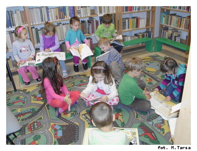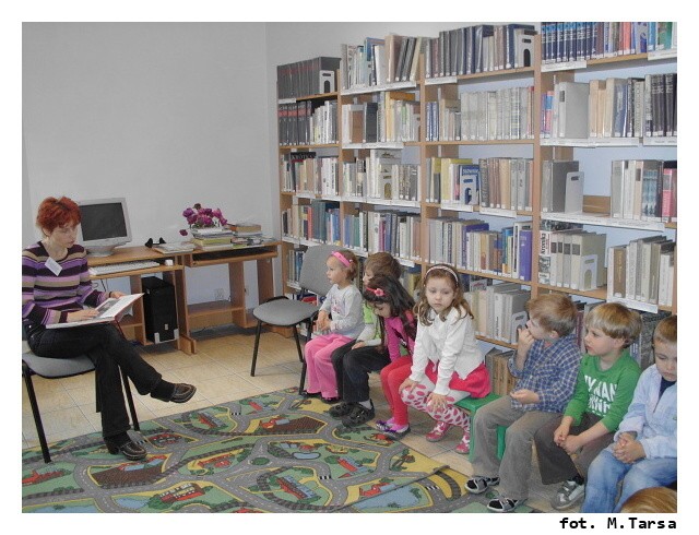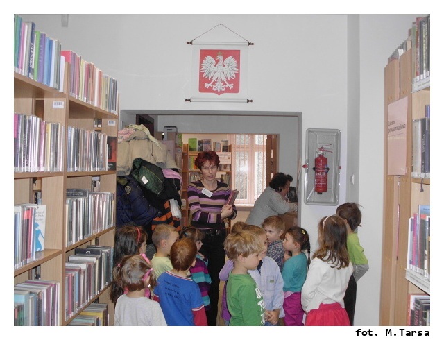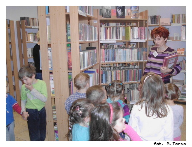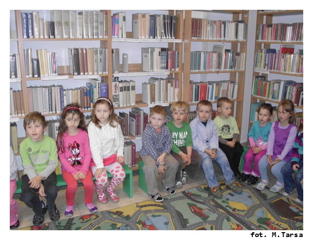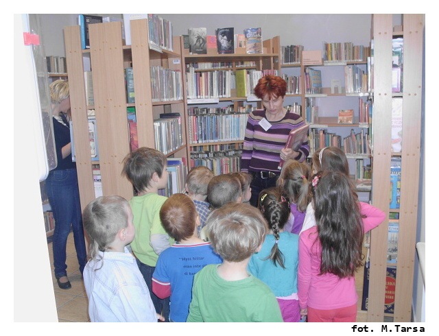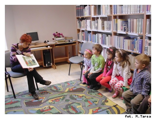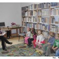 O4. czerwca dzieci z grupy II „Kangurki” odwiedziły bibliotekę mieszczącą się przy ul. Sikorskiego. Pani z biblioteki zapoznała nas z regulaminem korzystania z biblioteki i bogatymi zbiorami książek o różnej tematyce: przyrodniczej, sportowej, samochodowej itp. Powiedziała jak możemy z nich korzystać, zachęcała do odwiedzania z rodzicami i wypożyczania najciekawszych tytułów. W ramach XI Ogólnopolskiego Tygodnia Czytania Dzieciom pani bibliotekarka przeczytała nam baśń pt. „Domek w lesie”. Z zainteresowaniem wszyscy słuchali, bo lektura była niezwykle ciekawa.