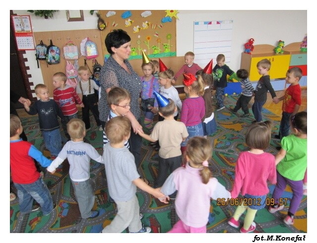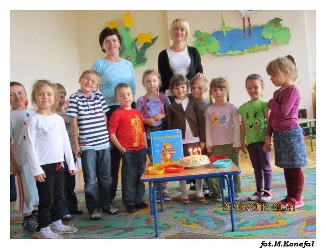 Już po raz ostatni w tym roku szkolnym wesoło bawiliśmy się z naszą myszką. Tym razem Tupcio zaprosił nas na swoje urodziny. Nasz bohater ma już pięć lat. Razem z Tupciem wesoło bawiliśmy się tego wyjątkowego dnia. Na początek odwiedziliśmy sale projekcyjną, w której obejrzeliśmy przygody naszej myszki. Grupy poranne przygotowały dla naszego jubilata tort, było wspólne ozdabianie słodkości i świeczki na torcie. „Słoniki” z tej okazji wybrały się na lody.