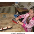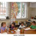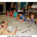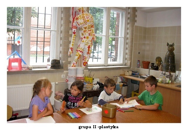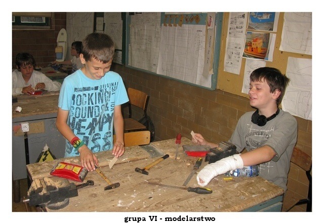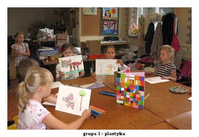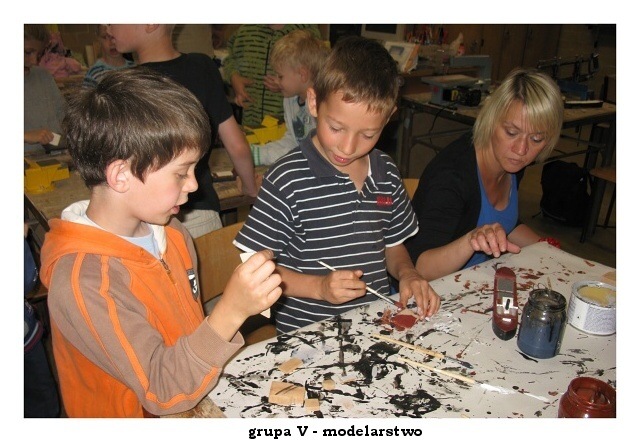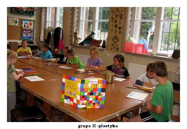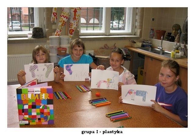 Przedostatni dzień pałacowych półkolonii upłynął jak zwykle w radosnej i twórczej atmosferze. W pracowni plastycznej powstawały kolorowe wizerunki słonia ELMERA, na zajęciach tanecznych doskonalono układ nad którym od poniedziałku pracują mali tancerze. W pracowni modelarstwa odbywały się ostatnie szlify i malowanie części modelu statku. Niektórym nie przeszkodziła w tym nawet kontuzja ręki.