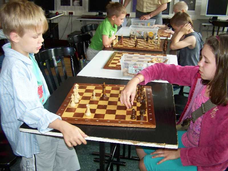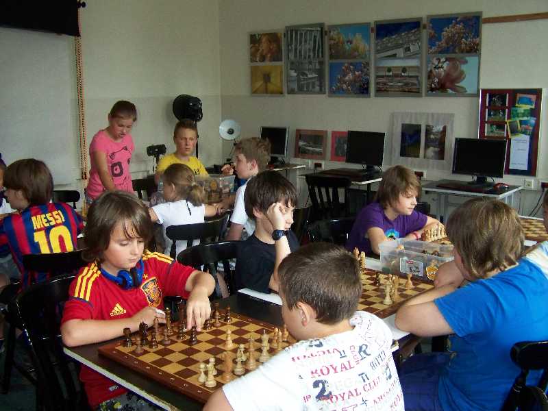 Wczoraj grupa młodsza ćwiczyła rozgrywanie końcówek, a starsza rozwiązywała kombinacje szachowe, a dzisiaj odwrotnie – i w ten sposób wszyscy półkoloniści mieli szansę na zaznajomienie się z różnymi elementami związanymi z partią szachową. Teraz pozostaje tylko rozwijać nabyte umiejętności. Kiedy więc pogoda nie będzie zachęcać do spacerów czy zabawy, zamiast do komputera, warto usiąść przy planszy, ustawić figury i pionki i… do dzieła!