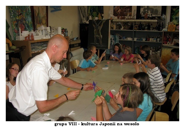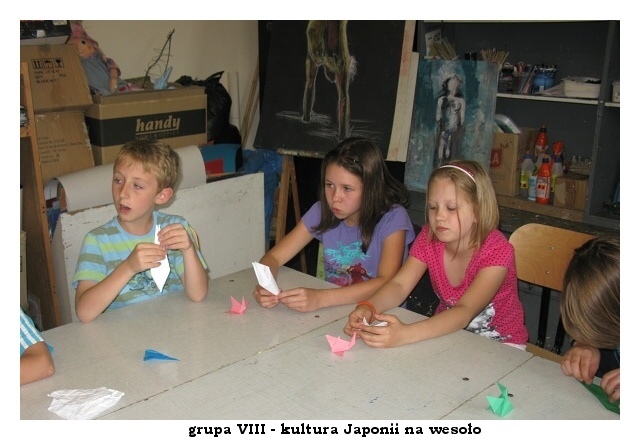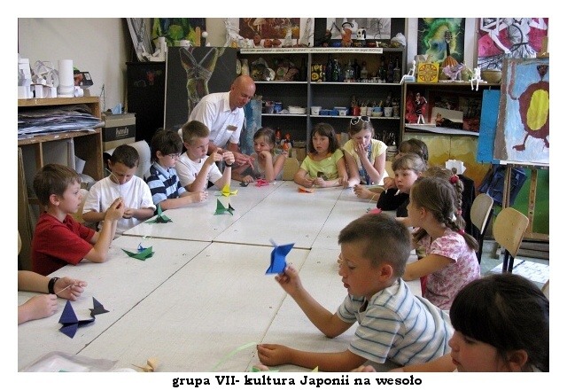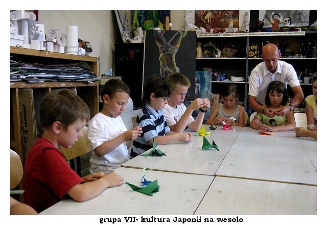 Dziś rozpoczął się drugi turnus pałacowych półkolonii. Stu dwudziestu uczestników wzięło udział w zajęciach, w wybranych wcześniej pracowniach. Na plastyce powstawały kolorowe mandale i portrety dłoni, w pracowni modelarstwa przystąpiono do budowy ze styropianu i drewna małych drobnicowców. W trakcie zajęć na temat kultury Japonii dzieci wykonały kilka prac metodą origami. Powstały kolorowe kolibry, żurawie i gwiazdki. Ci co lubią się ruszać wyginali swe ciała na zajęciach tanecznych, sportowych i pływali w basenie.