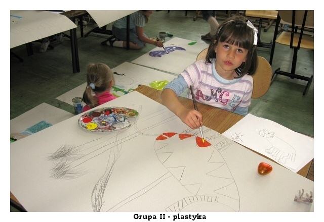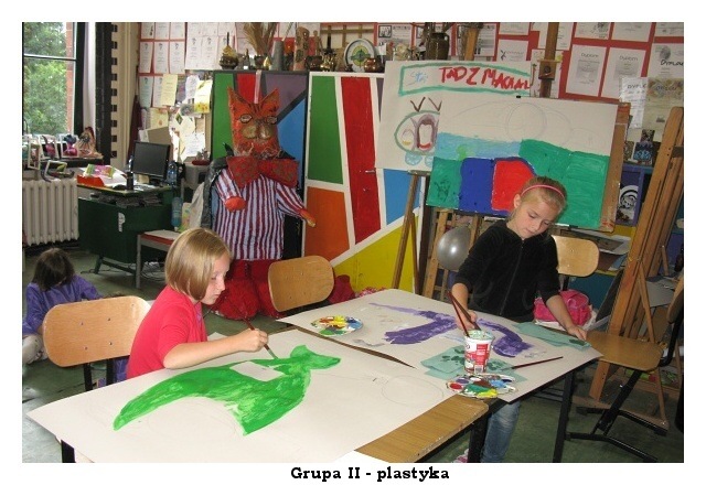 „O rety! Portrety!” tak zatytułowane były dzisiejsze zajęcia w jednej z pracowni plastycznych. Zadaniem dzieci jest przygotować swój portret, ale nietypowy. Każdy wybrał sobie bajkową postać lub zwierzę jakim chciałby być. Po pomalowaniu i wycięciu otworu uczestnicy „wejdą” w swój portret a efekt będzie można zobaczyć już niebawem.