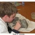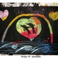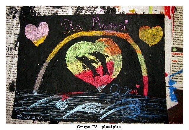 W drugiej pracowni plastycznej powstawały ptaki z gliny i pastelowe rysunki. Na pokrytej kilkoma warstwami pasteli kartce, uczestnicy zajęć wydrapywali wzory i rysunki. Dość często powtarzał się na nich motyw serca dla mamy!