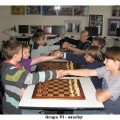 Na zajęciach szachowych grupa dowiedziała się czym jest strategia gry środkowej i jak ważna jest konieczność prowadzenia gry z planem. Jak zwykle instruktor przedstawił przykłady z praktyki szachowej na tablicy demonstracyjnej.