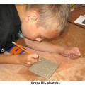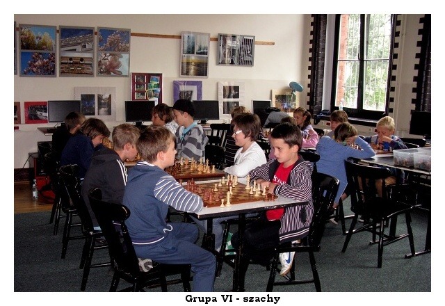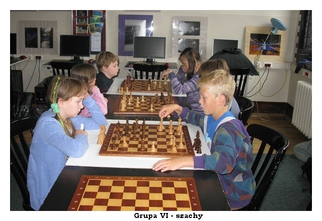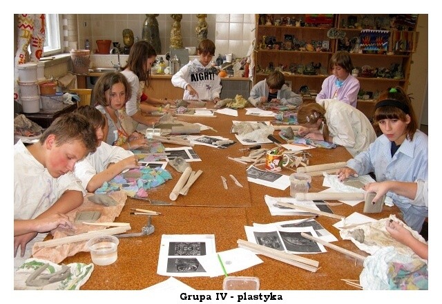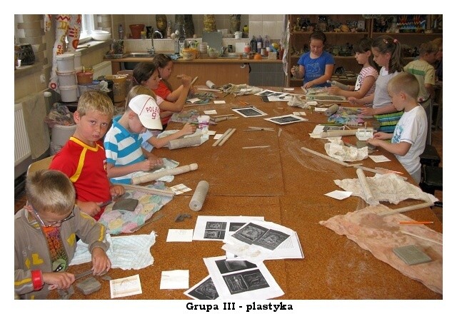 Dzisiejszy deszczowy dzień nie miał wpływu na samopoczucie naszych półkolonistów. W pałacowych pracowniach jak zwykle wiele się działo. W pracowni plastycznej wytwarzano z gliny własne kafle, na karate dzieci uczyły się ciosu prostego i ćwiczeń obronnych, na zajęciach sportowych po wyczerpującej rozgrzewce odbyła się zabawa pt. „Wyspa skarbów”, a w pracowni szachowej instruktor uczył jak poprawnie rozpoczynać grę. Był wykład na tablicy magnetycznej i oczywiście wiele ćwiczeń w praktyce.