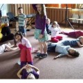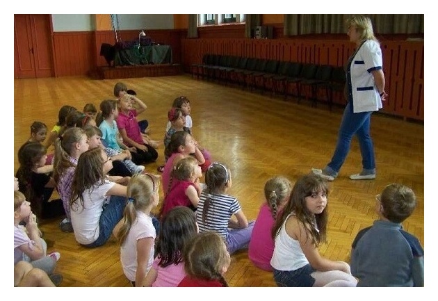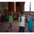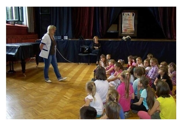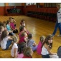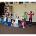 Po wczorajszym układzie do muzyki lirycznej przyszła kolej na coś bardziej dynamicznego – tym razem grupa II uczyła się nowej choreografii do muzyki pop, natomiast dla grupy I muzycznym tłem stał się hip-hop. Ważnym elementem ćwiczonym przy tej okazji było poczucie rytmu. Półkoloniści radzili sobie doskonale i najwyraźniej spodobał im się świat tańca, bo z ochotą wykonywali wszystkie polecenia pani Ewy. Obydwie grupy uczestniczyły dziś także w krótkim spotkaniu z panią pielęgniarką. Ponieważ rozmów o bezpieczeństwie nigdy dość, dzieci wysłuchały pogadanki na temat bezpiecznego spędzania wakacji.