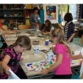 Grupa I rozpoczęła drugie zajęcia plastyczne od dokończenia przygody z komórką – okazało się bowiem, że można prace jeszcze wzbogacić kolorystycznie, wykorzystując do tego celu farby plakatowe i akwarelowe. Rezultaty przeszły chyba najśmielsze oczekiwania… Natomiast grupa II zajęła się dzisiaj malowaniem barwnych motyli – swoje prace półkoloniści wykonywali przy użyciu mieszanych technik plastycznych.