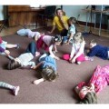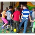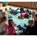 Wśród dzisiejszych zabaw przy muzyce dominowały zadania z wykorzystaniem sprzętu sportowego, różnego typu konkurencje i gry logiczne. Nie zabrakło także ćwiczeń relaksacyjnych i wyciszających. Wszystkim towarzyszyła oczywiście muzyka, a jej charakter pan Marcin dobierał odpowiednio do rodzaju zabawy.