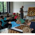 Drugi dzień z szachami to kolejny kroczek na bardzo długiej drodze do osiągnięcia poziomu arcymistrza. Ale półkoloniści nie zastanawiają się nad tym, tylko pilnie słuchają, uczą się i ćwiczą. Poznali dziś podział debiutów szachowych – czyli, mówiąc językiem laika, dowiedzieli się, jakie mogą być rodzaje ruchów rozpoczynających partię. W drugiej części zajęć rozegrali natomiast pierwszą rundę turnieju szachowego.