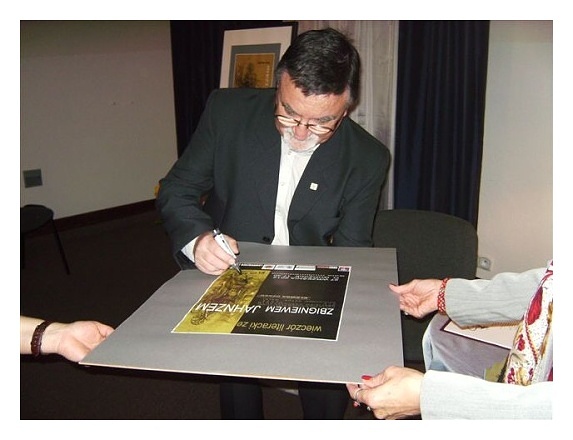 Po wakacjach, tym razem we wrześniu /27.09/ rozpoczęliśmy nasz cykl spotkań W PAŁACU literacko, 15.już! wieczorem /kolejny mały jubileusz! ozdobiony słonecznikami/, który był promocją tomiku poezji Klamra czasu Zbigniewa Jahnza, poety żołnierza, plastyka, grafika komputerowego, nauczyciela sztuk walki i… wiele można było się dopowiedzieć o bohaterze wieczoru, bo biografię ma niezwykle bogatą.
