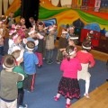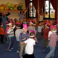 Aby uczcić zwycięstwo świnek nad wilkiem, dzieci tańczyły wesoło przy muzyce i śpiewały radośnie piosenkę „My jesteśmy świnki trzy”.